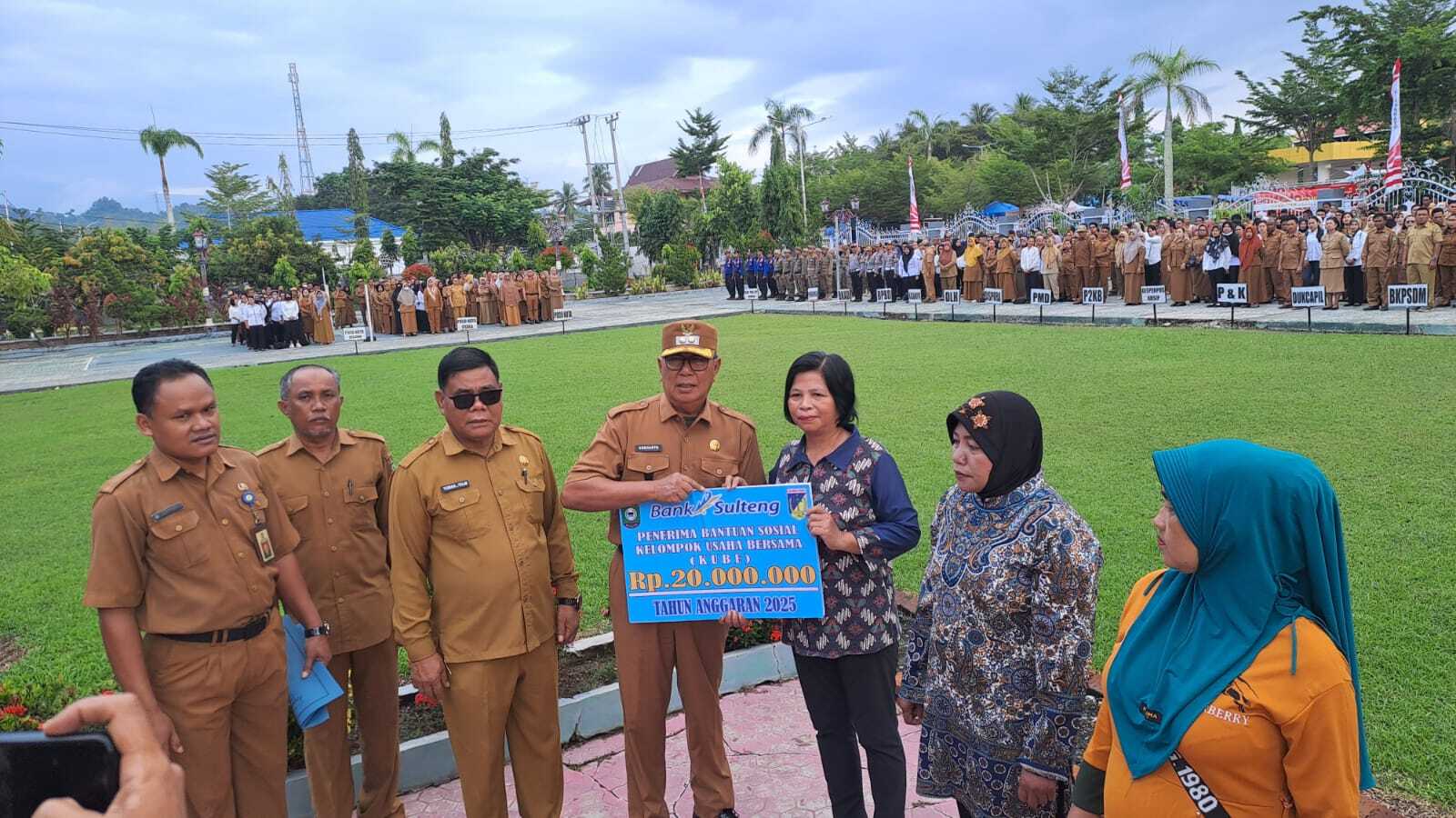 Hari Senin, 4 Agustus 2025 dilaksanakan penyerahan bantuan modal usaha untuk individu dan Kelompok Usaha Bersama (KUBE). Penyerahan ini dilakukan secara simbolis oleh bapak wakil Bupati H. Soeharto Kandar didamping oleh Kepala Dinas Sosial Bapak Ir. Yusak Theri Mentara dan Kepala Bidang Pemberdayaan Sosial Bapak Sahrudin Podungge, S.Pt.,M.Si serta Kepala Bidang Penanganan Fakir Miskin Bapak Supadi, SH pada saat pelaksanaan Apel Bersama hari Senin.